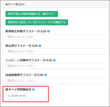 「楽天ペイ利用開始日」に設定されている日付より後の日付にて旧受注を取り込ませたい場合、