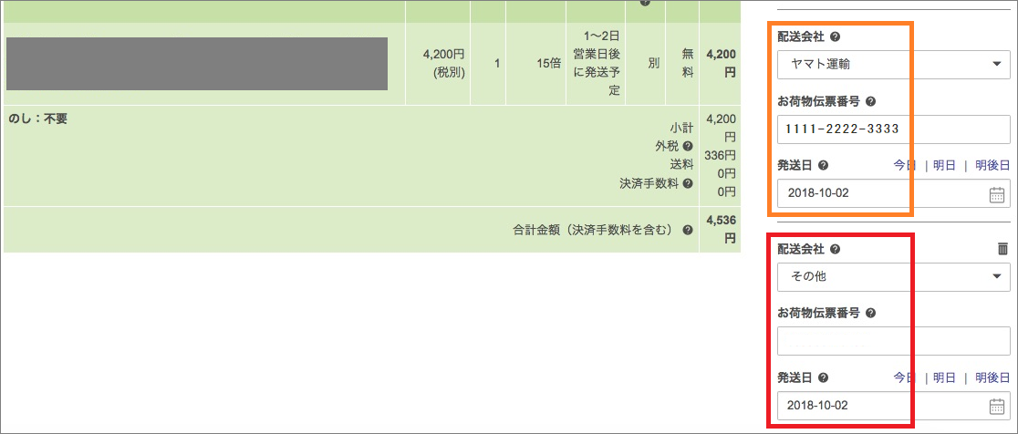 Home / トラブル・エラー / RMS上で受注が処理済にならない(楽天ペイ)RMS上で受注が処理済にならない(楽天ペイ) 以下画面のように、RMS受注詳細にて配送情報に空欄がございますと、 RMSは自動で処理済にいたしません。 (オレンジ枠は全て反映済の状態、赤枠が一部情報不足の状態) 楽天ペイの仕様上、複数の配送情報欄が発生した場合、 配送会社、お荷物伝票番号、発送日の情報が全て反映されないとRMS上で出荷済みとなりません。 ※クレジット決済においては売上請求処理がなされません。 手動にてデータ修正頂きますよう、お願いいたします。 役に立ちましたか? はい いいえ 25人中10人が役に立ったと言っています。