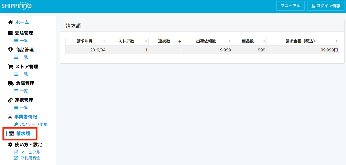 【リリース】シッピーノ管理画面でご請求額の確認ができます! 2019/05/24/ 18:36 平素は弊社サービス「シッピーノ」をご愛顧いただき、誠にありがとうございます。 シッピーノ管理画面で毎月のご請求額をご確認いただけるようになりました。 リリース日時:2019/05/24(金)18:30頃 確認可能期間:2019年4月分〜 ご利用料金のご確認にぜひご活用ください。