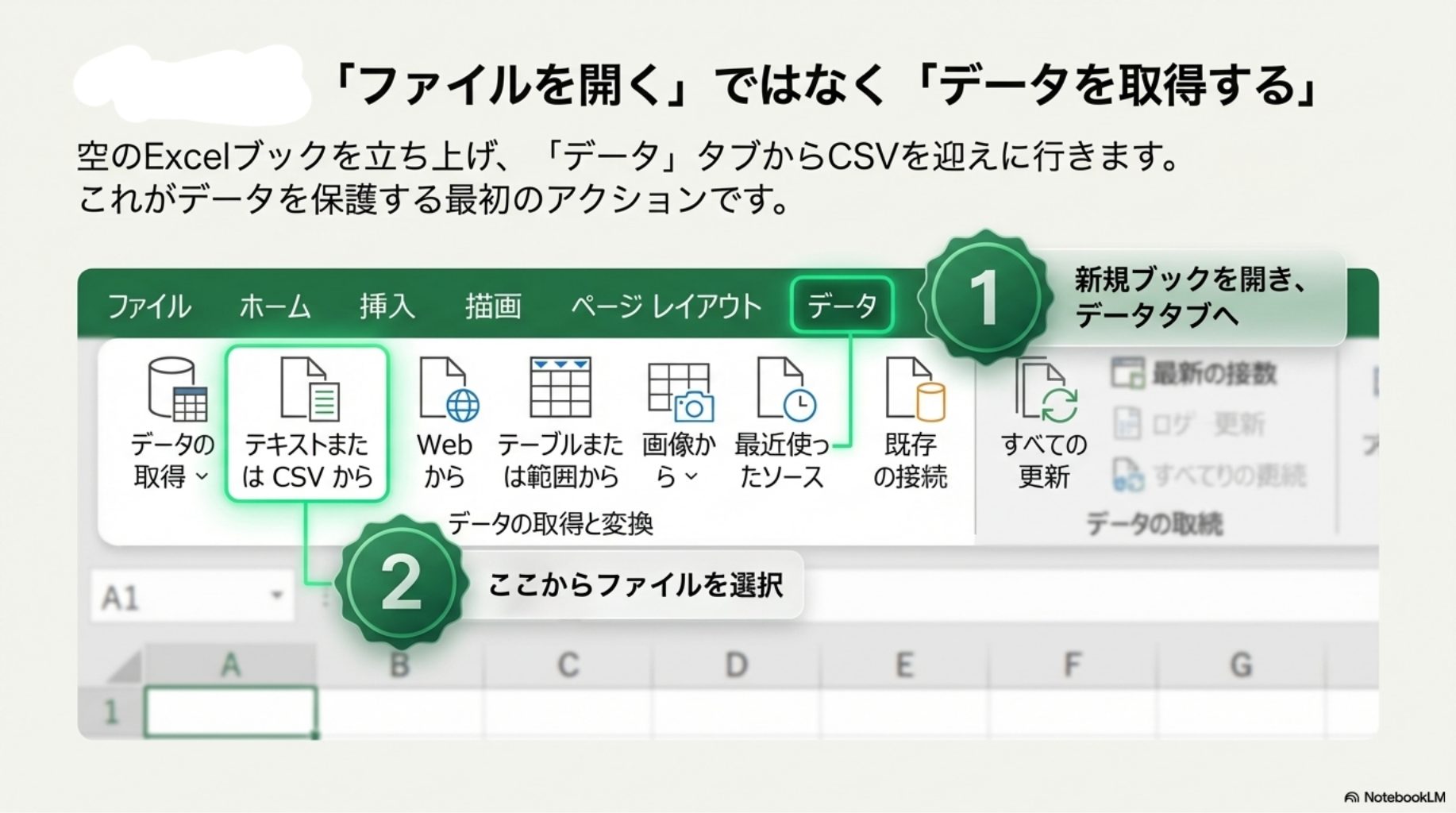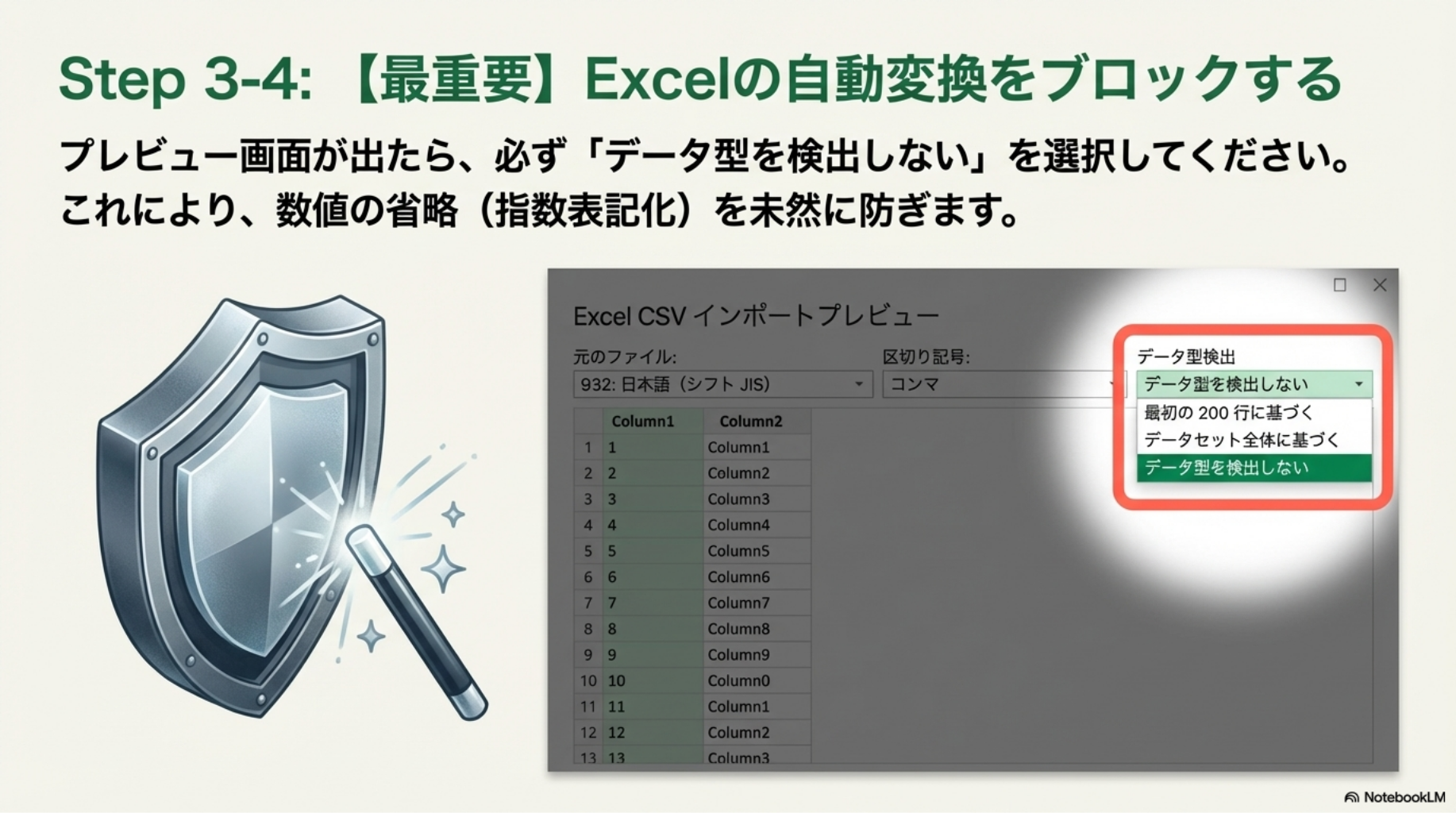 CSV ファイルを Excel で文字化けしないように開く方法をご案内します。