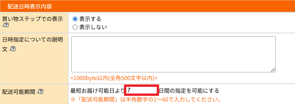 LogiMoProでは、受付出来る配送日時指定の範囲が定められています。