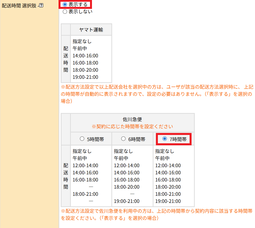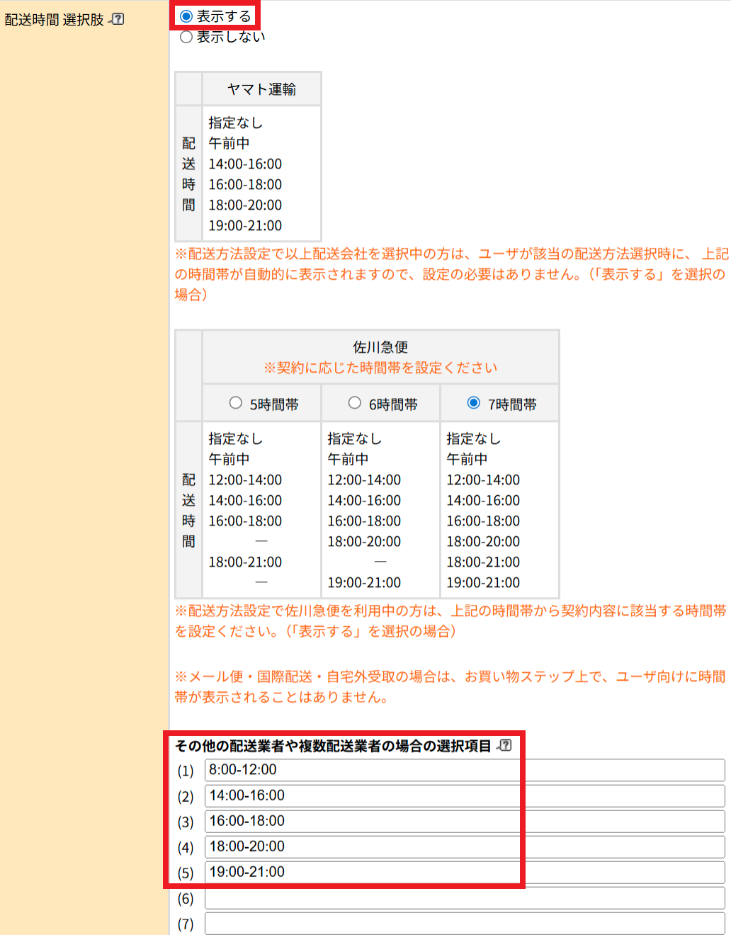 宅配マルチチャネルのご利用次第で設定が変わります。
