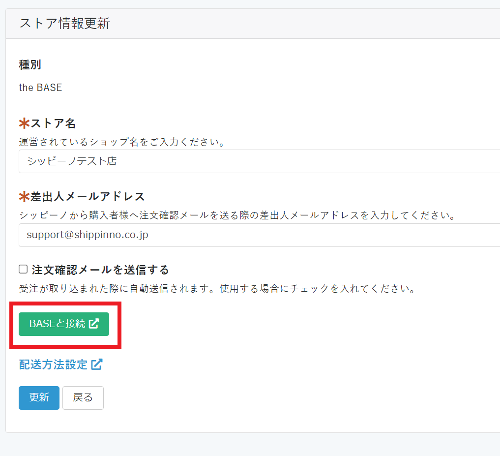 Home / 初期設定 / ストア登録TIPS / BASEでの事前設定方法 / BASEと接続するBASEと接続する TIPS 複数のBASEアカウントと連携の際は、必ずBASEをログアウトの上操作をお願いいたします。 BASEショップオーナーのアカウントで操作をお願いいたします。 シッピーノログイン ≫ ストア管理一覧 ≫ the BASE、設定 ≫情報編集 BASE「アプリを認証する」をクリック 役に立ちましたか? はい いいえ 0人中0人が役に立ったと言っています。
