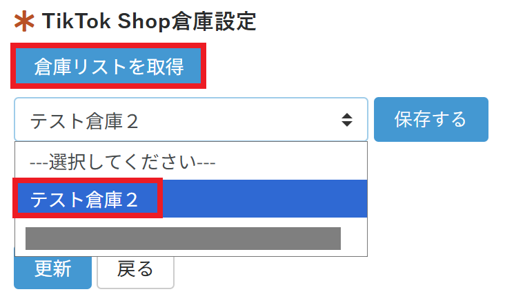 集荷倉庫のリストが表示されるので選択し、保存するをクリック