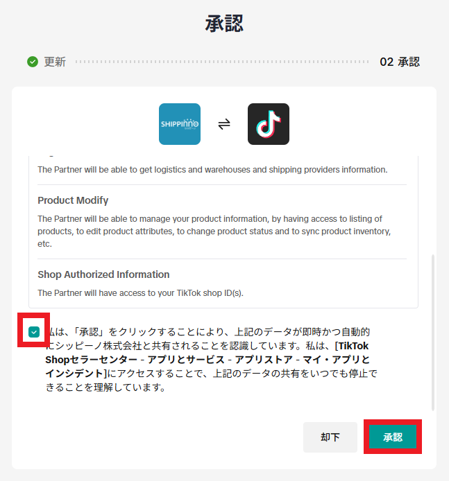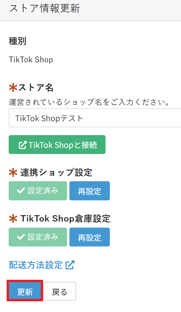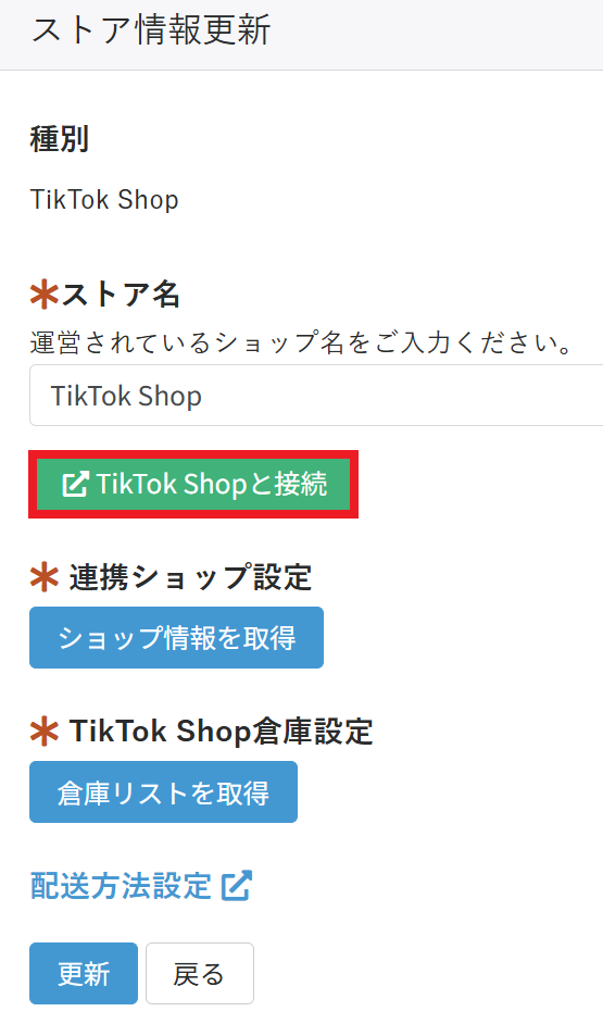 > TikTok Shop との接続が完了しました。と表示が出れば完了