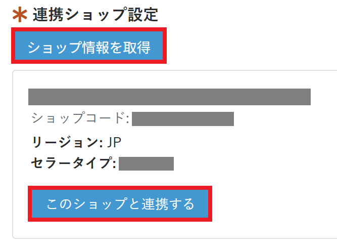 リージョン=JPのショップのみ取得し、一つだけショップが表示されます。