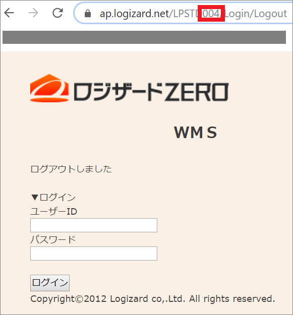 ロジザードZEROログイン画面URL、以下箇所の3桁番号を確認します。